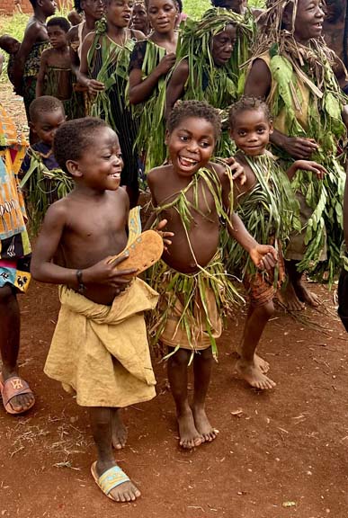 The next day we visit a pygmy village, where we are greeted with an enthusiastic dance.