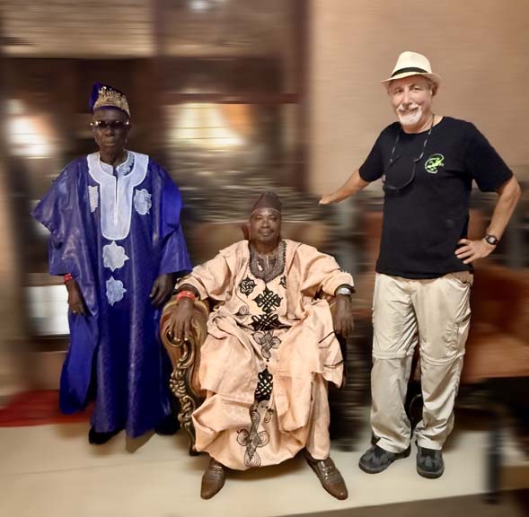After that, we move on to Offa. In order to visit the palace of His Majesty, the Olofa of Offa, we must first meet with his chief of staff. We "pass" the interview, but HRM is not available for a photo op; his minions stand his stead.