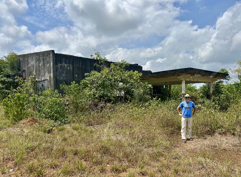 This crabbed history continues after a short boat ride to a barrier island and a long walk to the Atlantic shore. The fanciful Point of No Return is marked by two concrete pillars, symbolic of a portal and obviously no more than a few decades old. Even more recent is the "Ark of Embarkation," meant to be symbolic of something and now a rusting skeleton.
