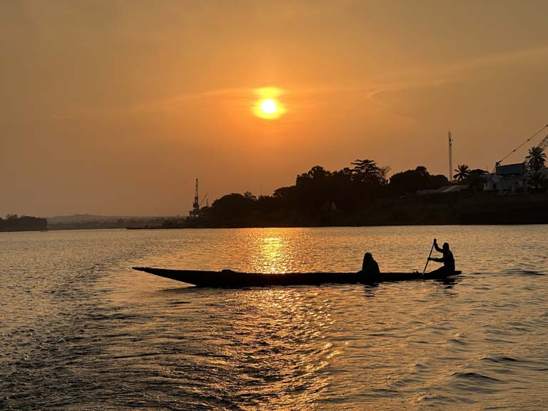 In the afternoon of our arrival we take a boat ride on the Ubangi River, a tributary of the Congo River. On the opposite shore is Democratic Republic of Congo and the town of Zongo, but, to our disappointment, our visa application was refused so we cannot cross over.