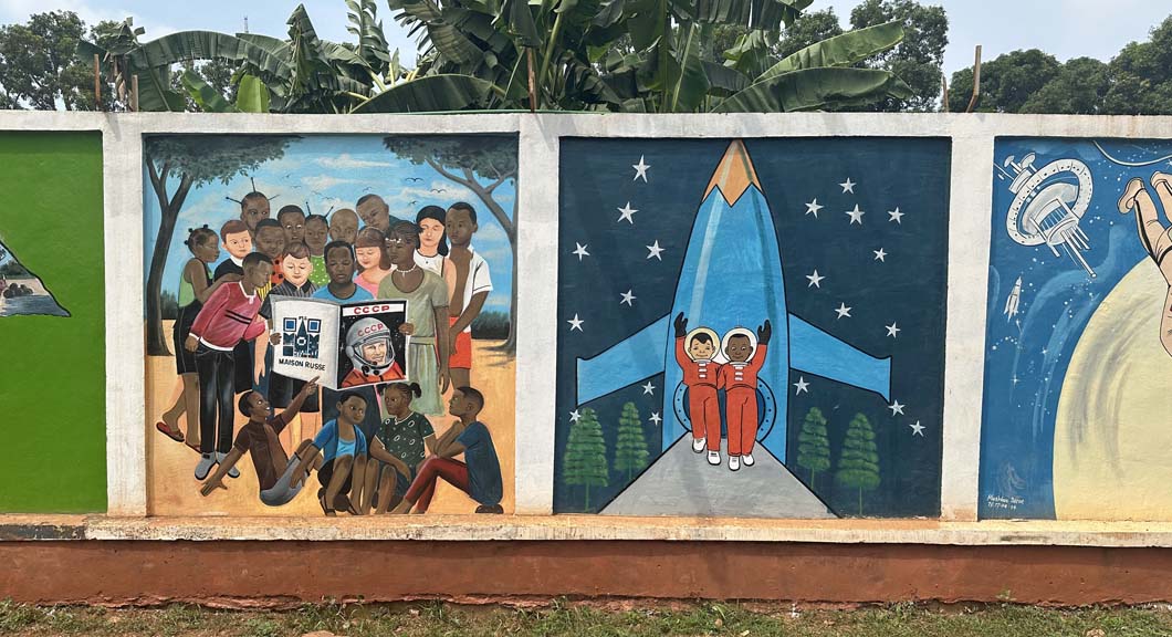 Murals depict the cheerful side of the Moscow-Bangui axis and recall the glory days of the U.S.S.R.