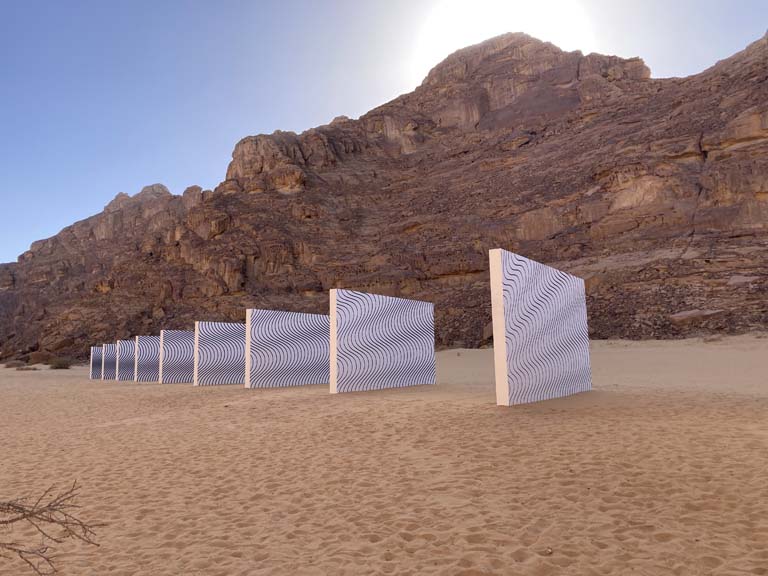 Coinciding with our visit is Al Ula's hosting of “Desert X”, an international contemporary art exhibition of the droppings of talentless artists from many lands. Scads of money have been spent on temporary buildings and infrastructure in a desolate canyon a few miles from the town. A fleet of fancy buses takes you out there and scores of giant golf carts shuttle you around fifteen pointless installations where docents parrot some explanatory nonsense. Piles of sand, mylar pillows, paint-splashed rocks -- it's The Emporer's New Clothes on steroids. At the end of the show, it will all be razed. Somewhere the “international art community” is laughing up their collective sleeves at bamboozling the Saudis to bankroll this idiocy.
