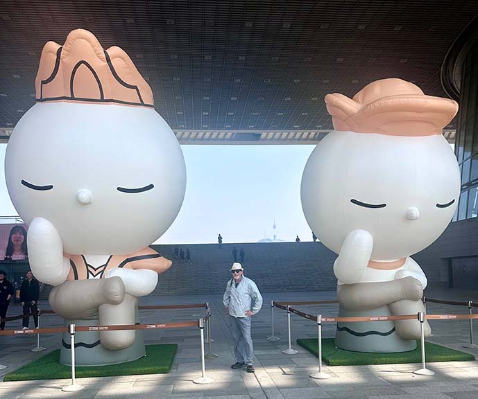 I was hoping to get to the Joint Security Area at Panmunjom, having already visited it from a Northern vantage. That is where the building and conference table straddle the actual dividing line and North and South Korean soldiers face off. Alas, it has been closed to tourism for the last couple of years. The closest I get is the purachase of a pair of souvenir ceramic figures depicting a NoKo guard at attention and his counterpart in “RoK steady” stance.