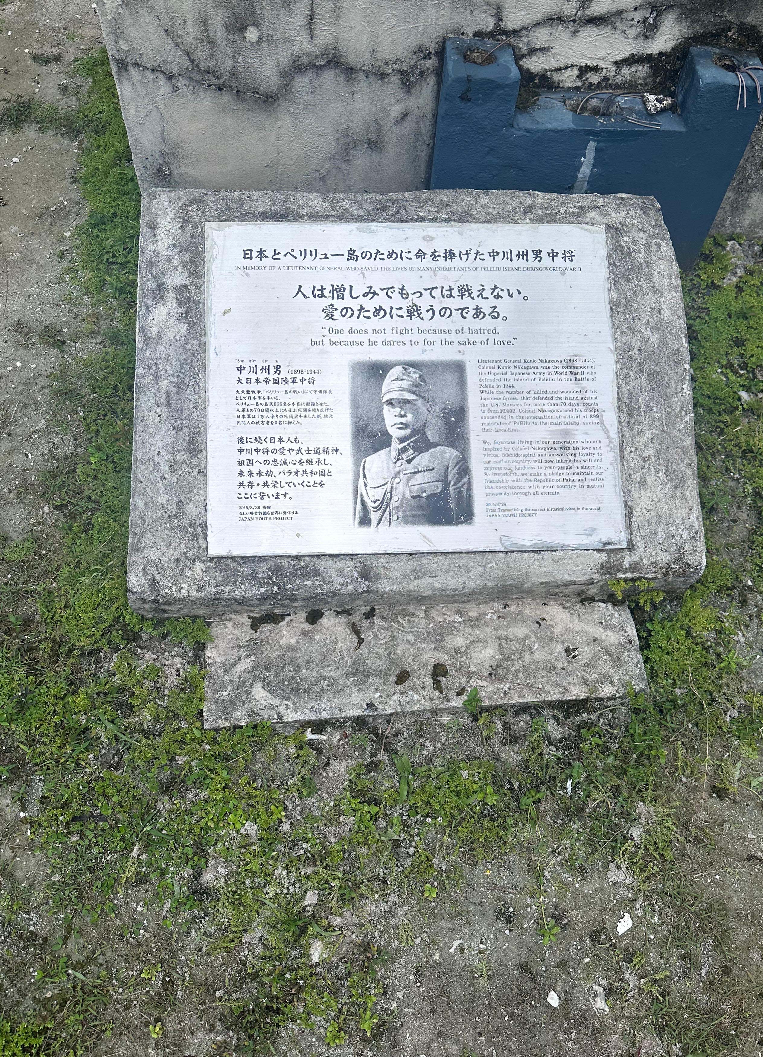 Redoubt where the Japanese commander committed suicide. The cenotaph of the supervising general (his actual grave is unknown) – he is honored because he evacuated the civilian population to Koror prior to the battle.