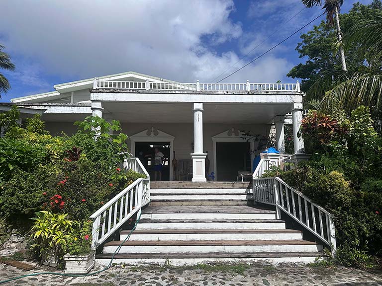 Another arriving passenger and I are the only guests at the grandly named Pacific Dive Resort in Colonia, the tiny principal settlement and capital of Yap State. A very comfortable rambling wooden structure, it is built in the style of tropical colonial architecture a century ago. Its very helpful Chinese manager volunteers to drive us to all parts of this flyspeck island.