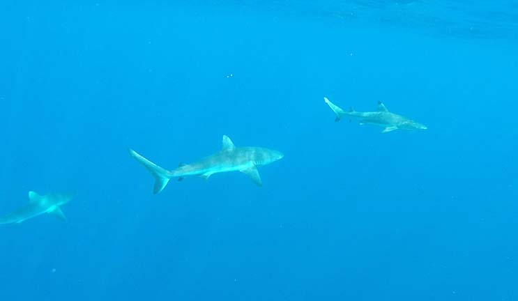 After lunch, three snorkel spots. Good, but in terms of variety and colors of the coral and reef life, inferior to the Maldives.